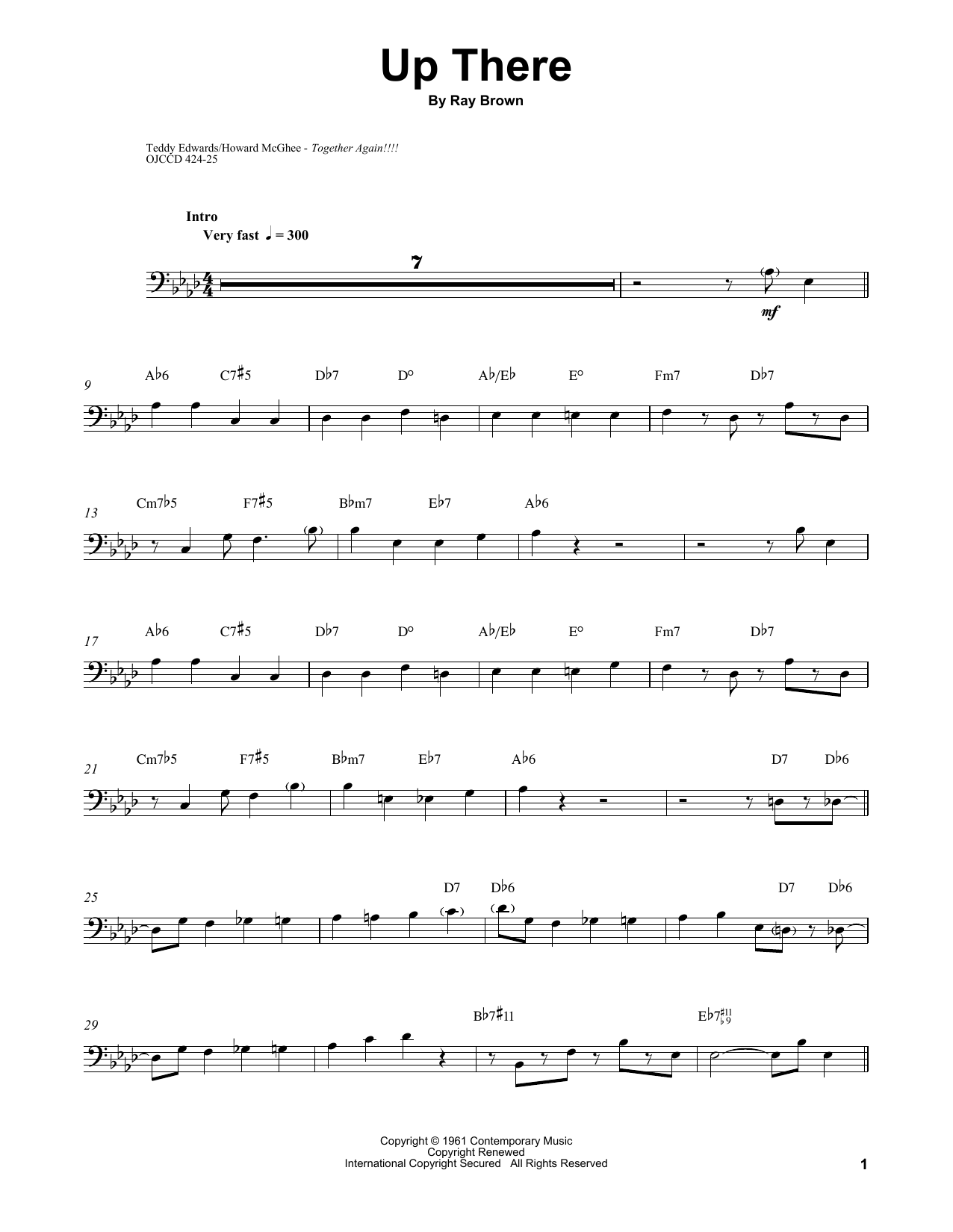 Download or print Ray Brown Up There sheet music, chords and digital score arranged for String Bass Transcription. This Jazz score includes 8 page(s).