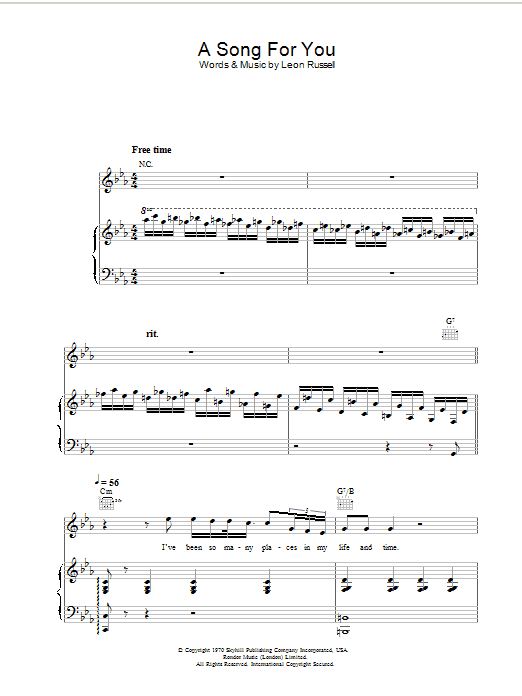 Download or print Ray Charles A Song For You sheet music, chords and digital score arranged for Lead Sheet / Fake Book. This Blues score includes 3 page(s).