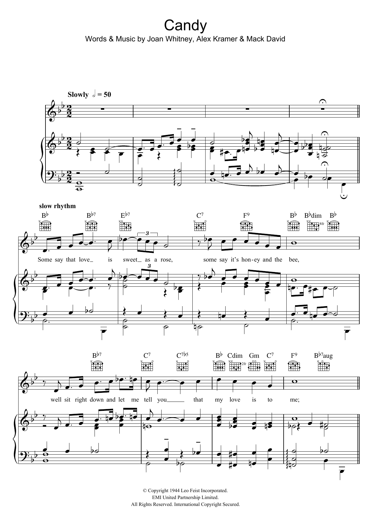 Download or print Ray Charles Candy sheet music, chords and digital score arranged for Piano, Vocal & Guitar Chords. This Standards score includes 4 page(s).