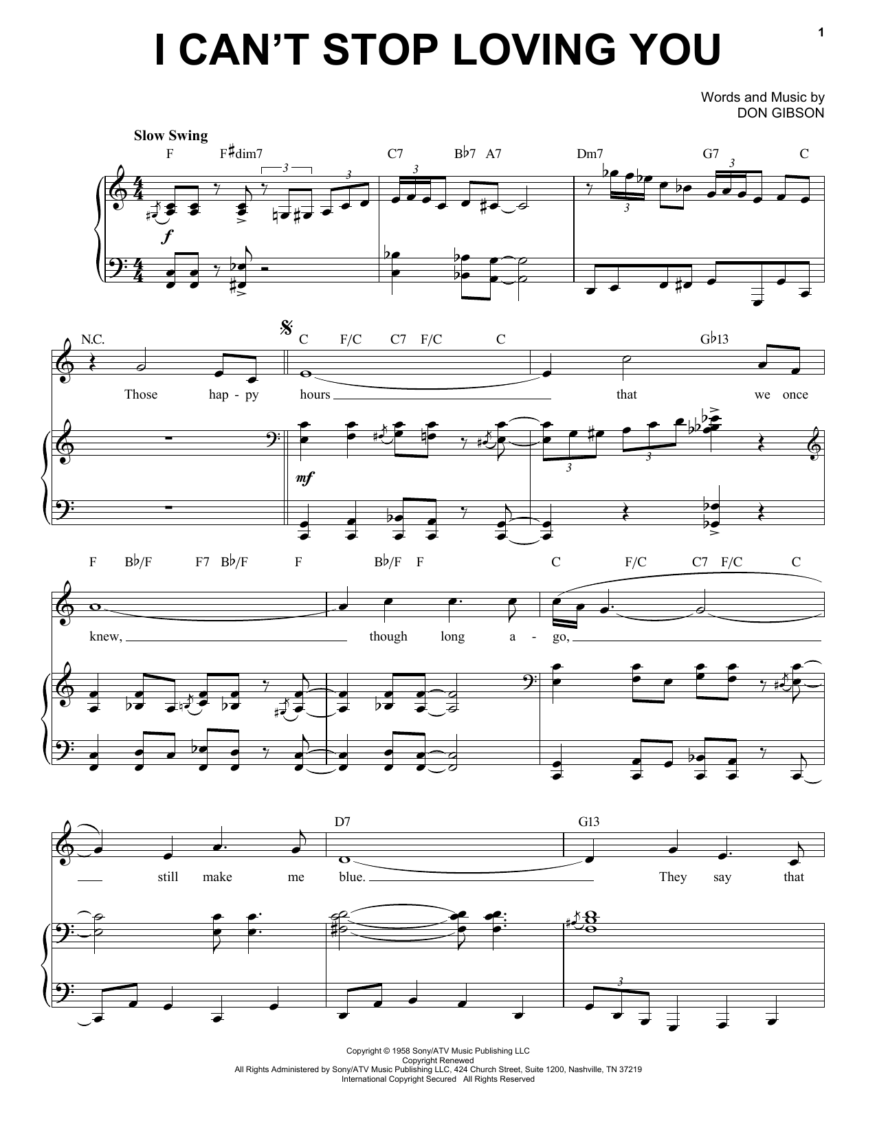 Download or print Ray Charles I Can't Stop Loving You [Jazz version] (arr. Brent Edstrom) sheet music, chords and digital score arranged for Piano & Vocal. This Country score includes 4 page(s).