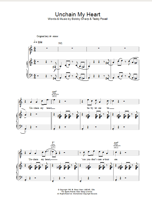 Download or print Ray Charles Unchain My Heart sheet music, chords and digital score arranged for Real Book – Melody, Lyrics & Chords. This Pop score includes 2 page(s).