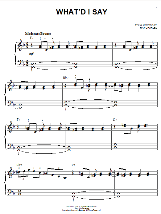 Download or print Ray Charles What'd I Say sheet music, chords and digital score arranged for Piano & Vocal. This Film/TV score includes 9 page(s).