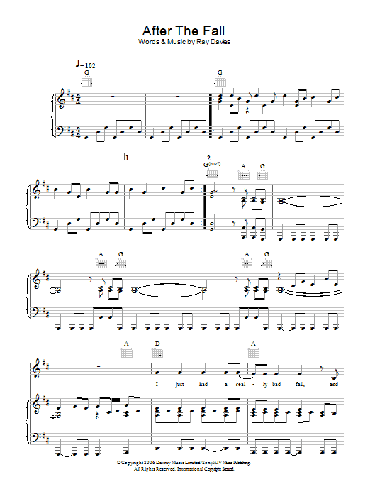 Download or print Ray Davies After The Fall sheet music, chords and digital score arranged for Piano, Vocal & Guitar Chords. This Pop score includes 10 page(s).