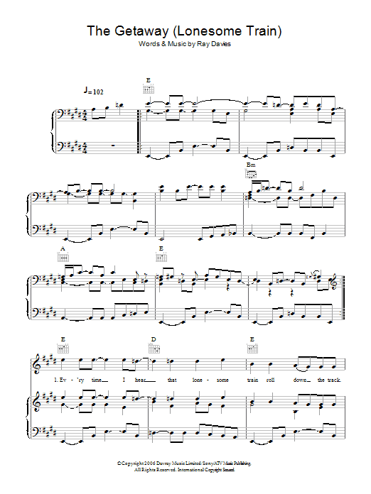Download or print Ray Davies The Getaway (Lonesome Train) sheet music, chords and digital score arranged for Piano, Vocal & Guitar Chords. This Pop score includes 9 page(s).