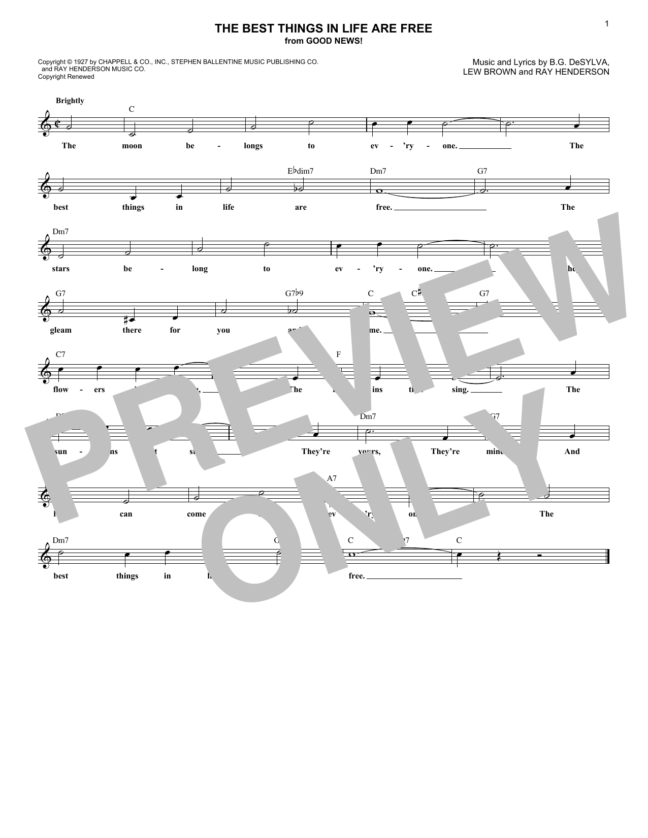 Download or print Ray Henderson The Best Things In Life Are Free sheet music, chords and digital score arranged for Lead Sheet / Fake Book. This Pop score includes 1 page(s).