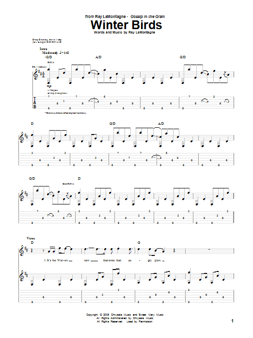 Download or print Ray LaMontagne Winter Birds sheet music, chords and digital score arranged for Guitar Tab. This Folk score includes 7 page(s).
