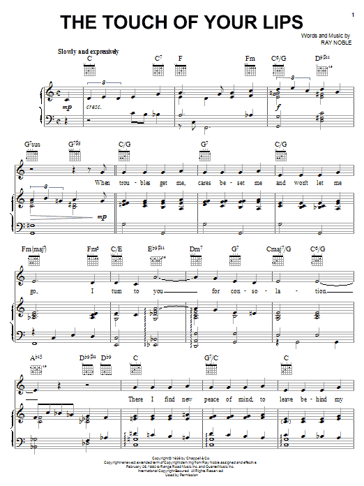 Download or print Ray Noble The Touch Of Your Lips sheet music, chords and digital score arranged for Lead Sheet / Fake Book. This Jazz score includes 1 page(s).
