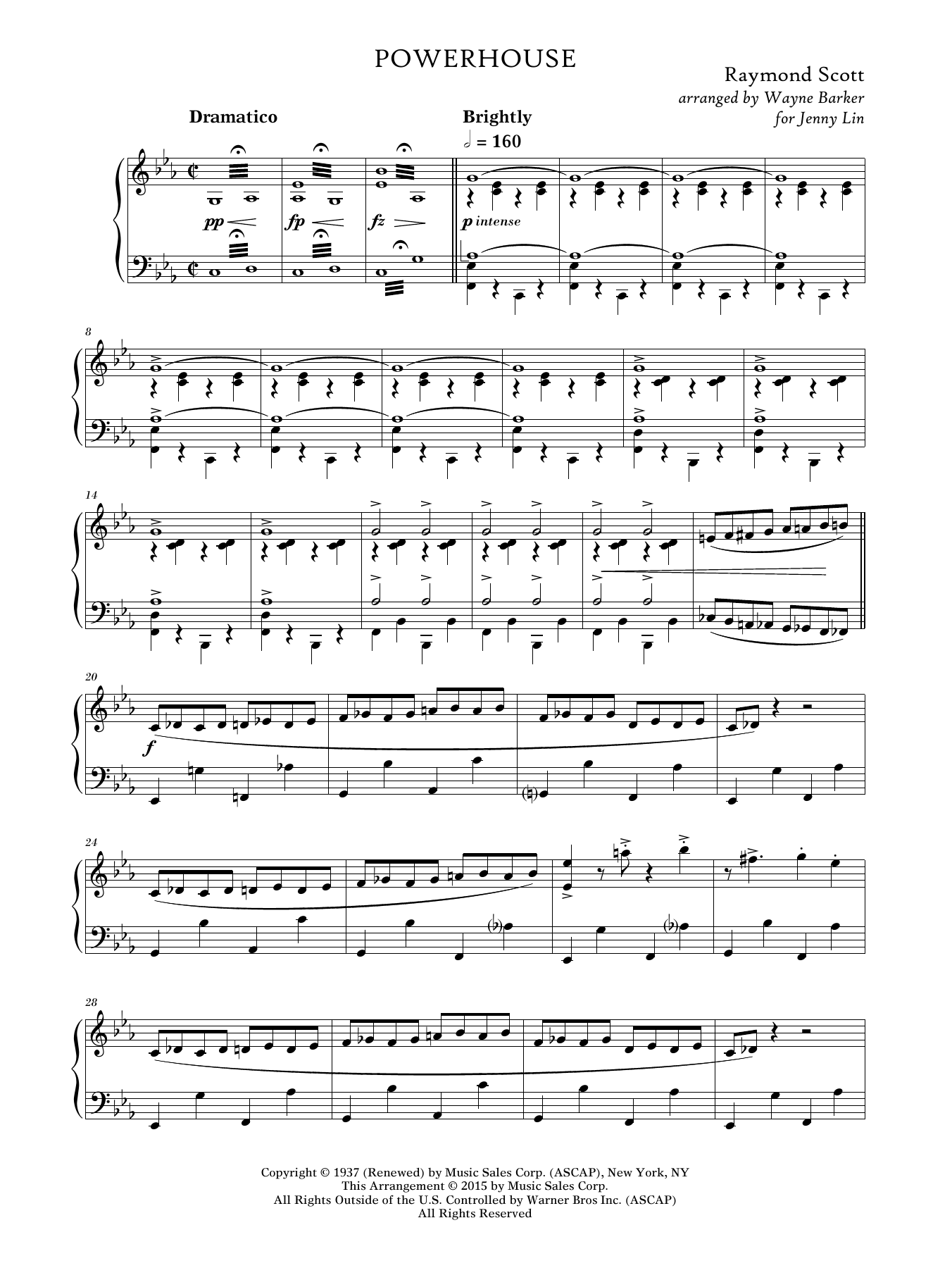 Download or print Raymond Scott Powerhouse (arr. Wayne Barker) sheet music, chords and digital score arranged for Piano Solo. This Jazz score includes 9 page(s).