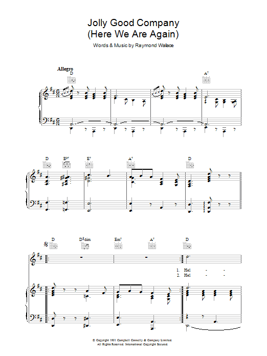 Download or print Raymond Wallace Jolly Good Company sheet music, chords and digital score arranged for Lead Sheet / Fake Book. This Traditional score includes 2 page(s).