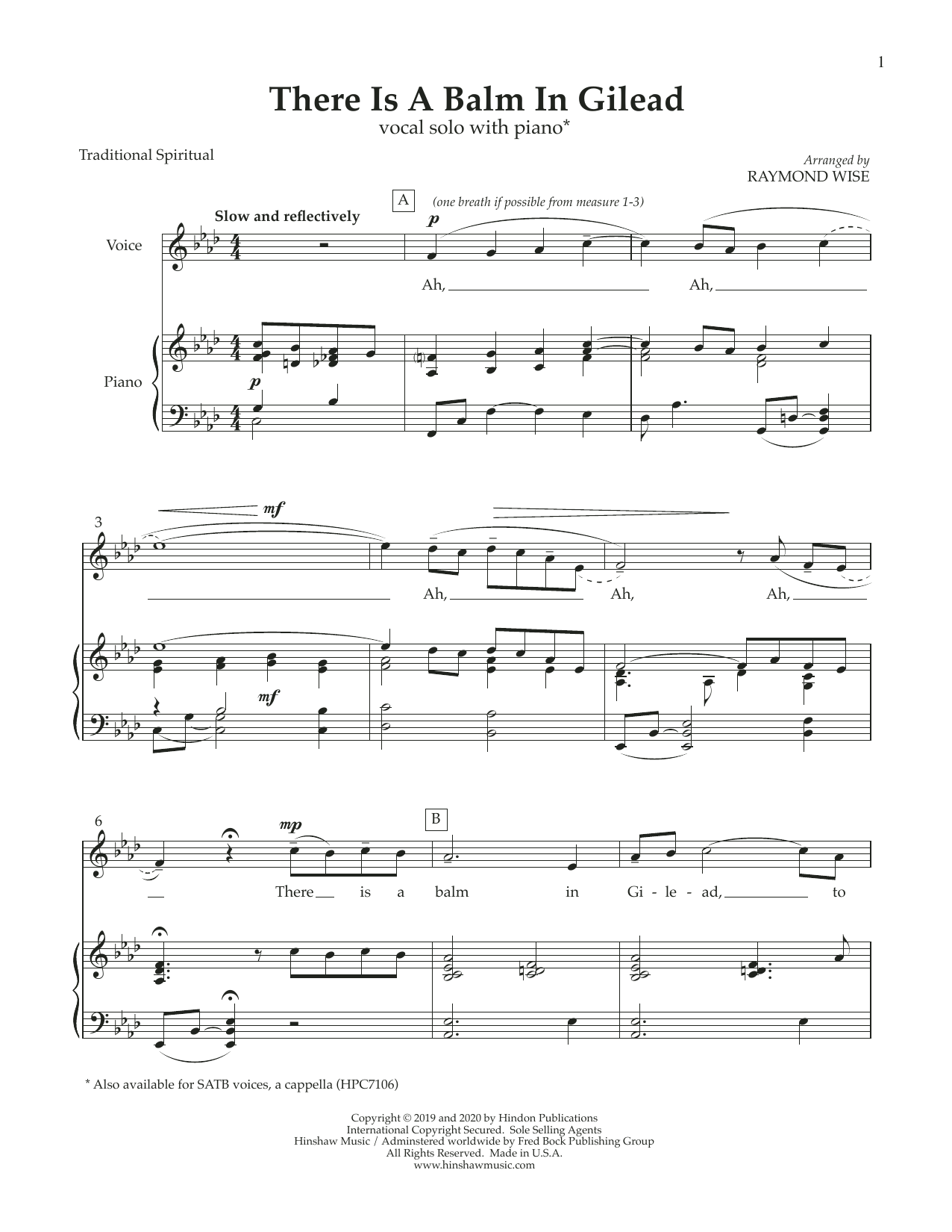 Download or print Raymond Wise There Is a Balm in Gilead sheet music, chords and digital score arranged for Piano & Vocal. This Jazz score includes 8 page(s).