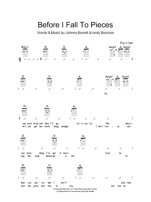 Download or print Razorlight Before I Fall To Pieces sheet music, chords and digital score arranged for Guitar Tab. This Pop score includes 9 page(s).