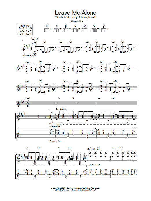 Download or print Razorlight Leave Me Alone sheet music, chords and digital score arranged for Guitar Tab. This Rock score includes 6 page(s).