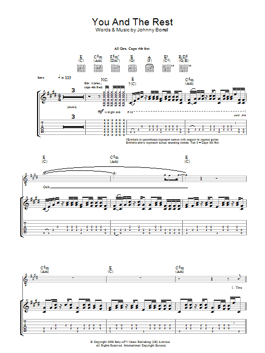 Download or print Razorlight You And The Rest sheet music, chords and digital score arranged for Guitar Tab. This Rock score includes 5 page(s).
