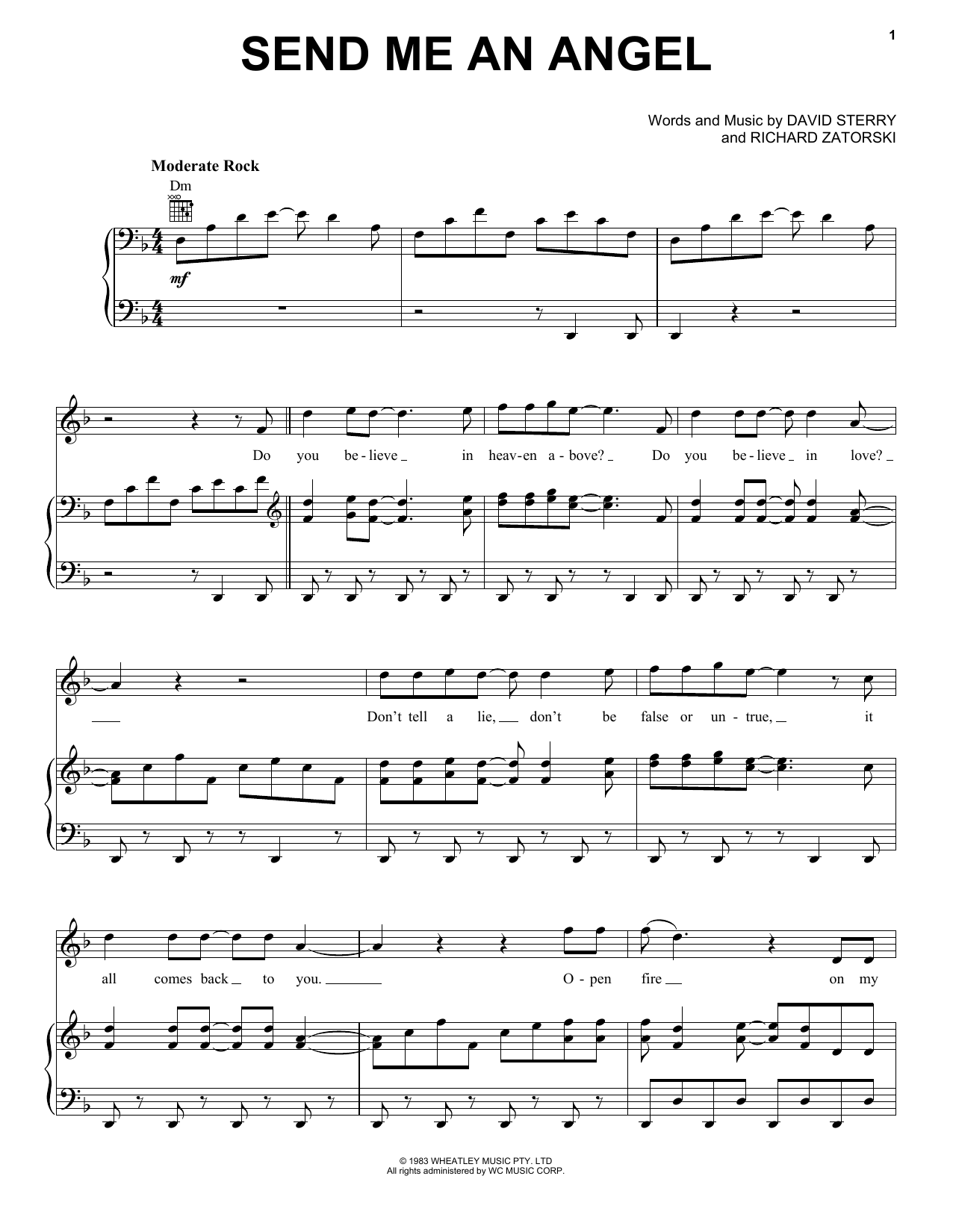 Download or print Real Life Send Me An Angel sheet music, chords and digital score arranged for Piano, Vocal & Guitar Chords (Right-Hand Melody). This Pop score includes 5 page(s).