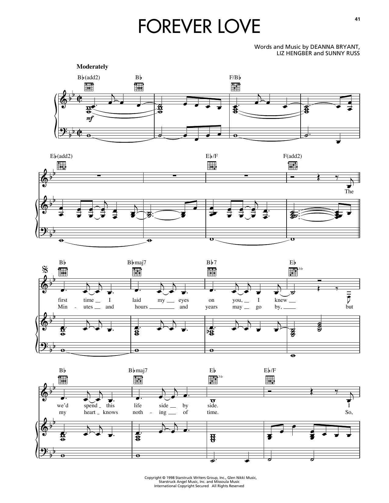 Download or print Reba McEntire Forever Love sheet music, chords and digital score arranged for Piano, Vocal & Guitar Chords (Right-Hand Melody). This Country score includes 6 page(s).