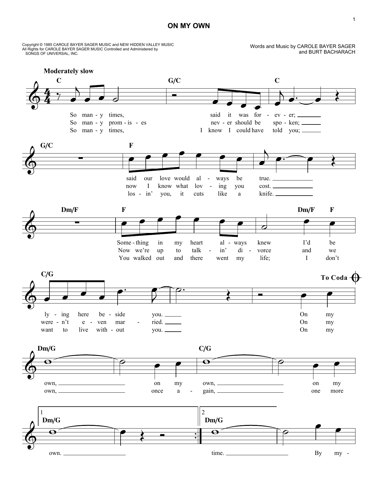 Download or print Reba McEntire On My Own sheet music, chords and digital score arranged for Easy Lead Sheet / Fake Book. This Pop score includes 2 page(s).