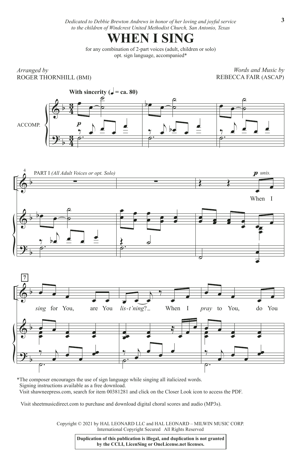 Download or print Rebecca Fair When I Sing (arr. Roger Thornhill) sheet music, chords and digital score arranged for 2-Part Choir. This Children score includes 6 page(s).