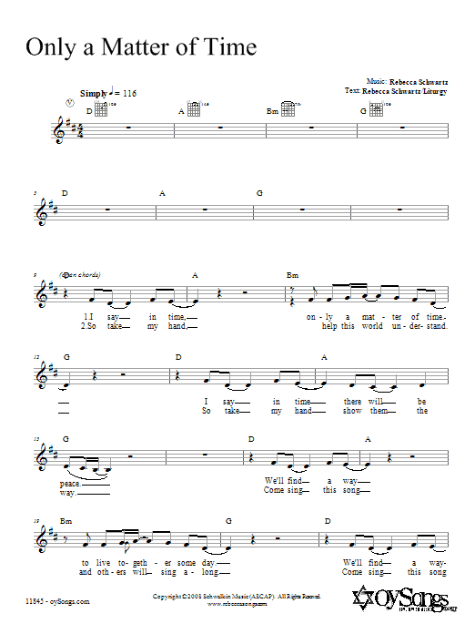 Download or print Rebecca Schwartz Only a Matter of Time (Oseh Shalom) sheet music, chords and digital score arranged for Lead Sheet / Fake Book. This Traditional score includes 4 page(s).