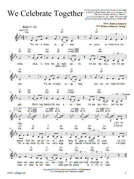 Download or print Rebecca Schwartz We Celebrate Together sheet music, chords and digital score arranged for Lead Sheet / Fake Book. This Traditional score includes 2 page(s).