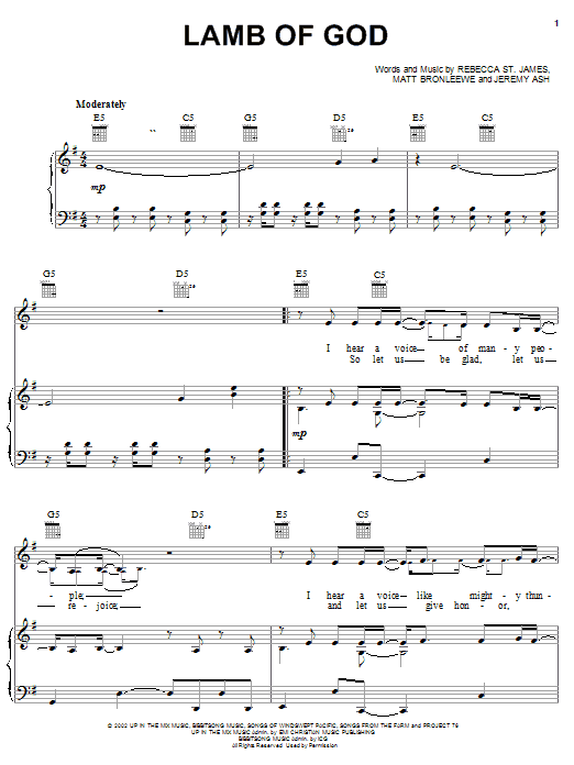 Download or print Rebecca St. James Lamb Of God sheet music, chords and digital score arranged for Piano, Vocal & Guitar Chords (Right-Hand Melody). This Christian score includes 5 page(s).