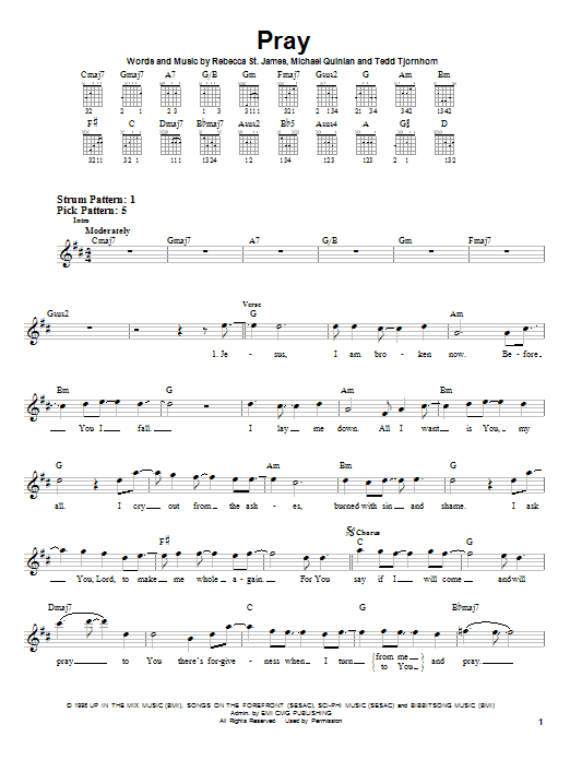 Download or print Rebecca St. James Pray sheet music, chords and digital score arranged for Piano, Vocal & Guitar Chords (Right-Hand Melody). This Sacred score includes 7 page(s).