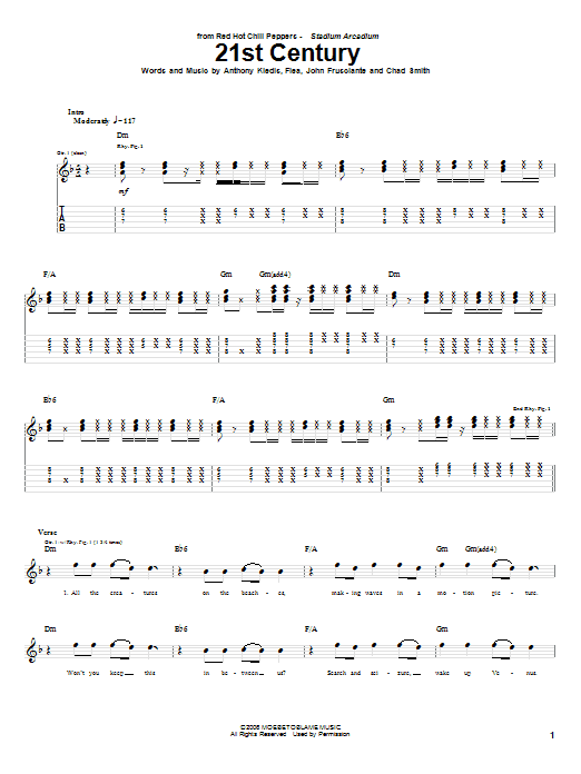 Download or print Red Hot Chili Peppers 21st Century sheet music, chords and digital score arranged for Guitar Tab. This Funk score includes 17 page(s).