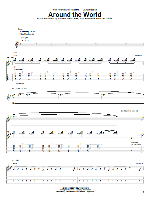 Download or print Red Hot Chili Peppers Around The World sheet music, chords and digital score arranged for Guitar Tab. This Pop score includes 5 page(s).