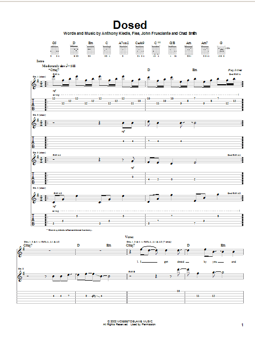 Download or print Red Hot Chili Peppers Dosed sheet music, chords and digital score arranged for Guitar Lead Sheet. This Pop score includes 3 page(s).