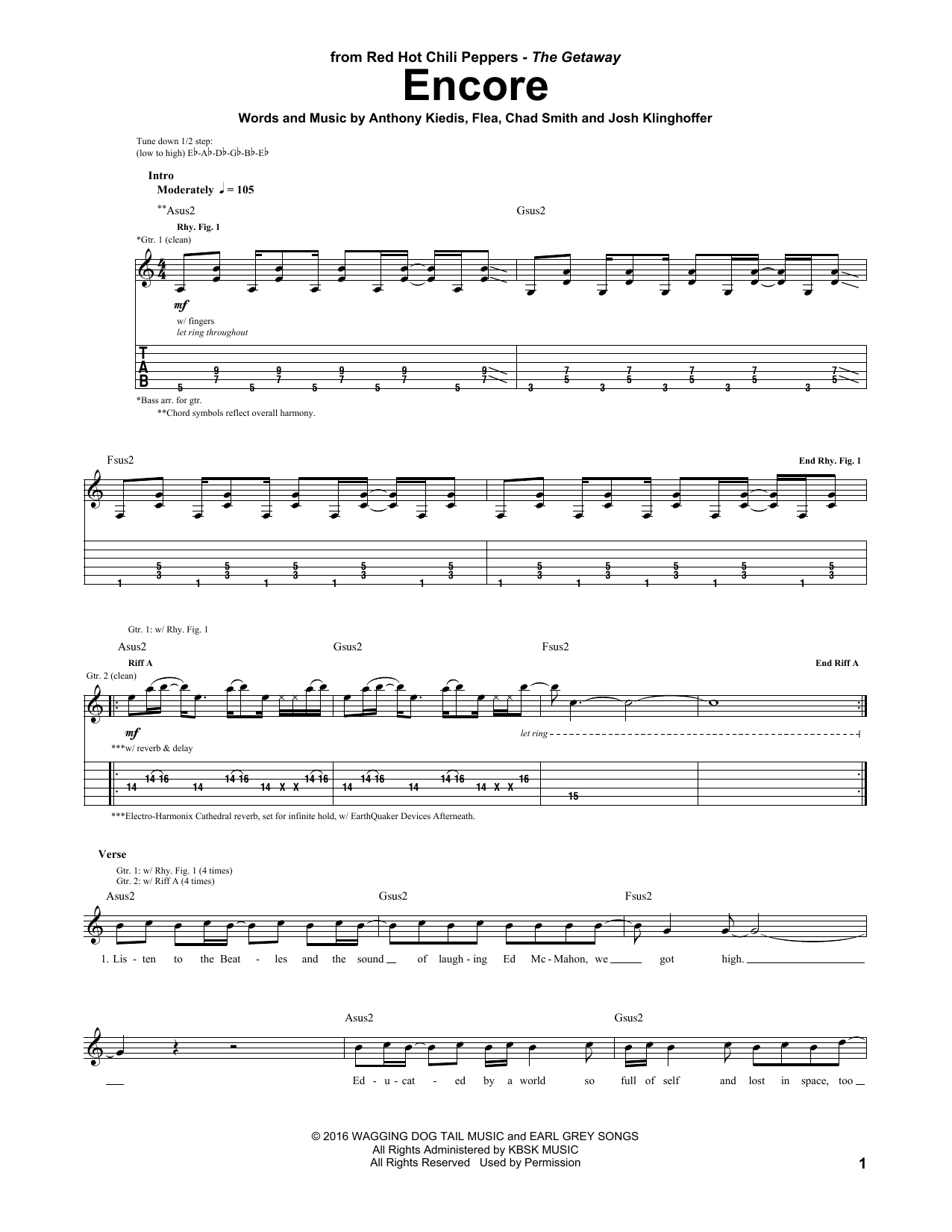 Download or print Red Hot Chili Peppers Encore sheet music, chords and digital score arranged for Guitar Tab. This Pop score includes 9 page(s).