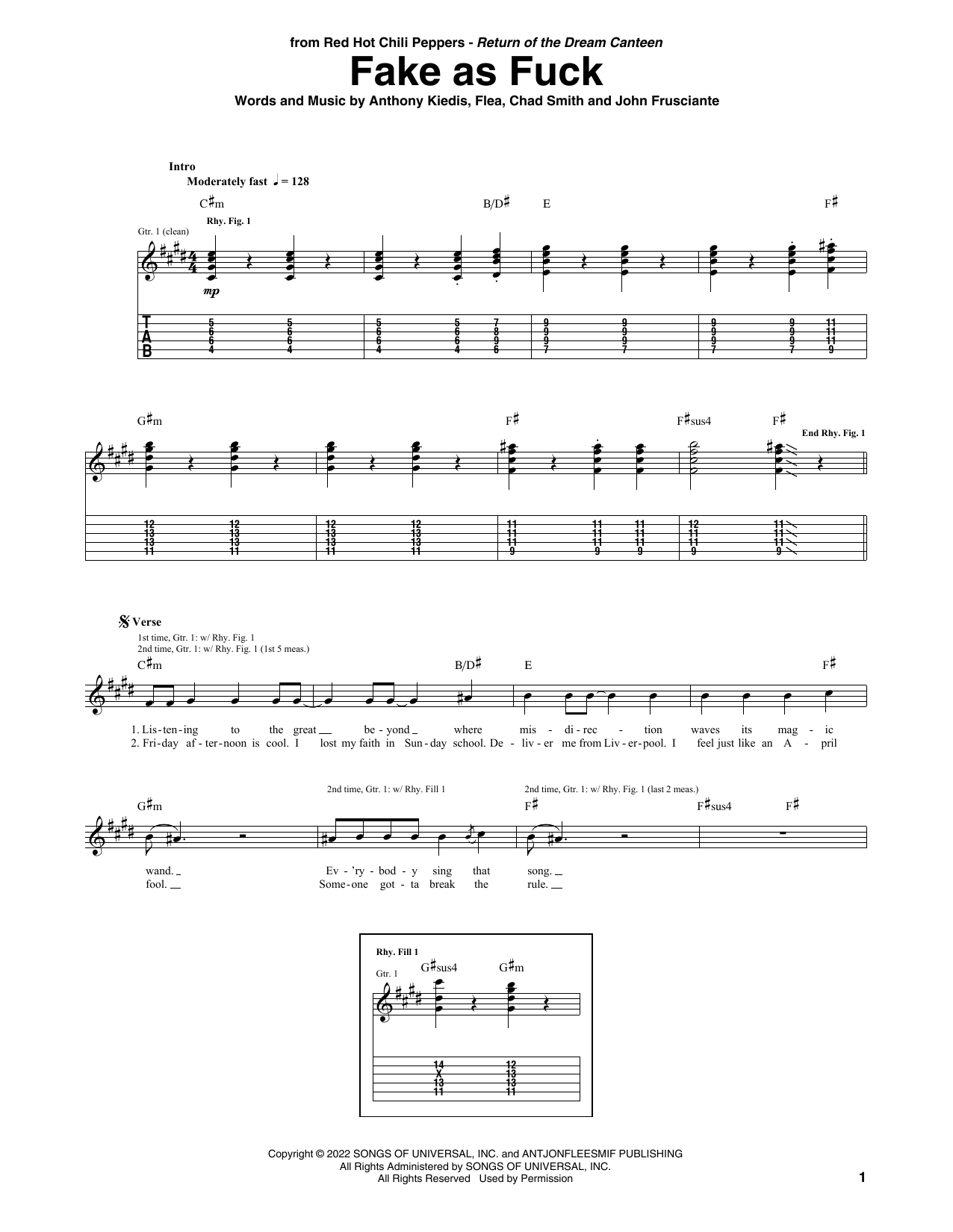 Download or print Red Hot Chili Peppers Fake As Fuck sheet music, chords and digital score arranged for Guitar Tab. This Rock score includes 7 page(s).