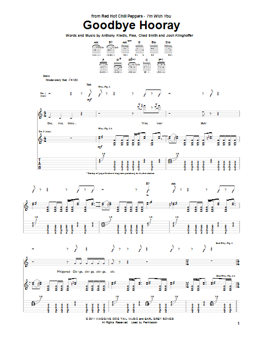 Download or print Red Hot Chili Peppers Goodbye Hooray sheet music, chords and digital score arranged for Guitar Tab. This Pop score includes 12 page(s).