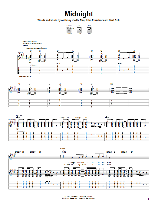 Download or print Red Hot Chili Peppers Midnight sheet music, chords and digital score arranged for Guitar Tab. This Rock score includes 6 page(s).