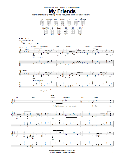 Download or print Red Hot Chili Peppers My Friends sheet music, chords and digital score arranged for Guitar Tab (Single Guitar). This Pop score includes 7 page(s).