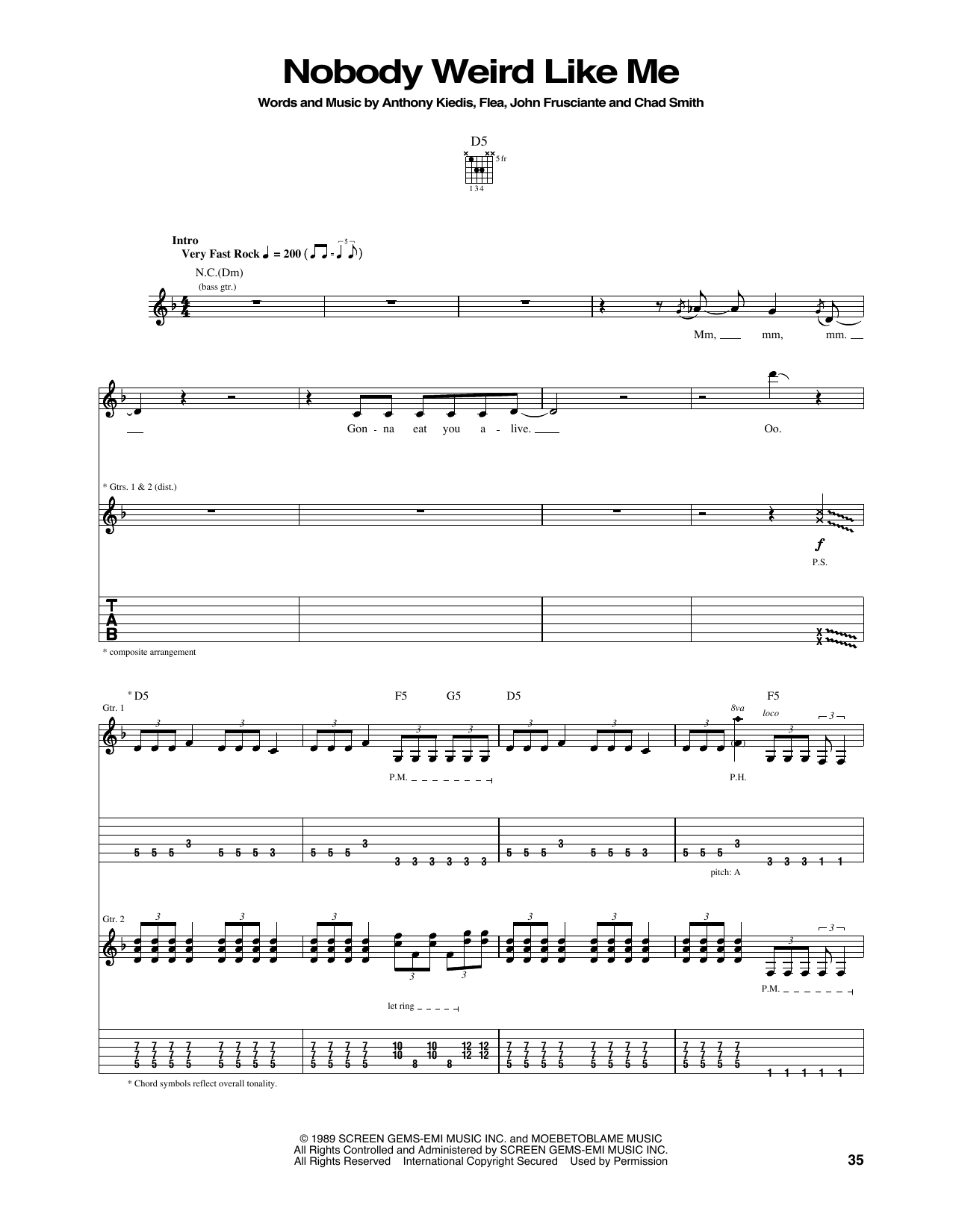 Download or print Red Hot Chili Peppers Nobody Weird Like Me sheet music, chords and digital score arranged for Guitar Tab. This Funk score includes 12 page(s).