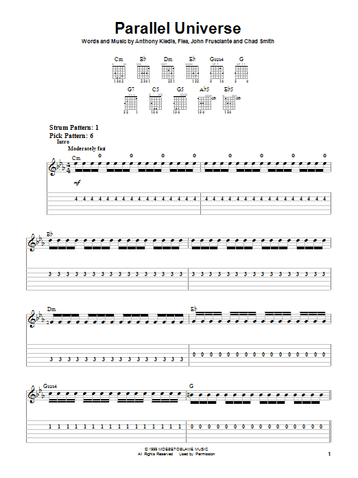 Download or print Red Hot Chili Peppers Parallel Universe sheet music, chords and digital score arranged for Bass Guitar Tab. This Alternative score includes 4 page(s).