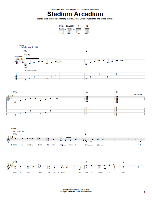 Download or print Red Hot Chili Peppers Stadium Arcadium sheet music, chords and digital score arranged for Guitar Tab. This Pop score includes 12 page(s).