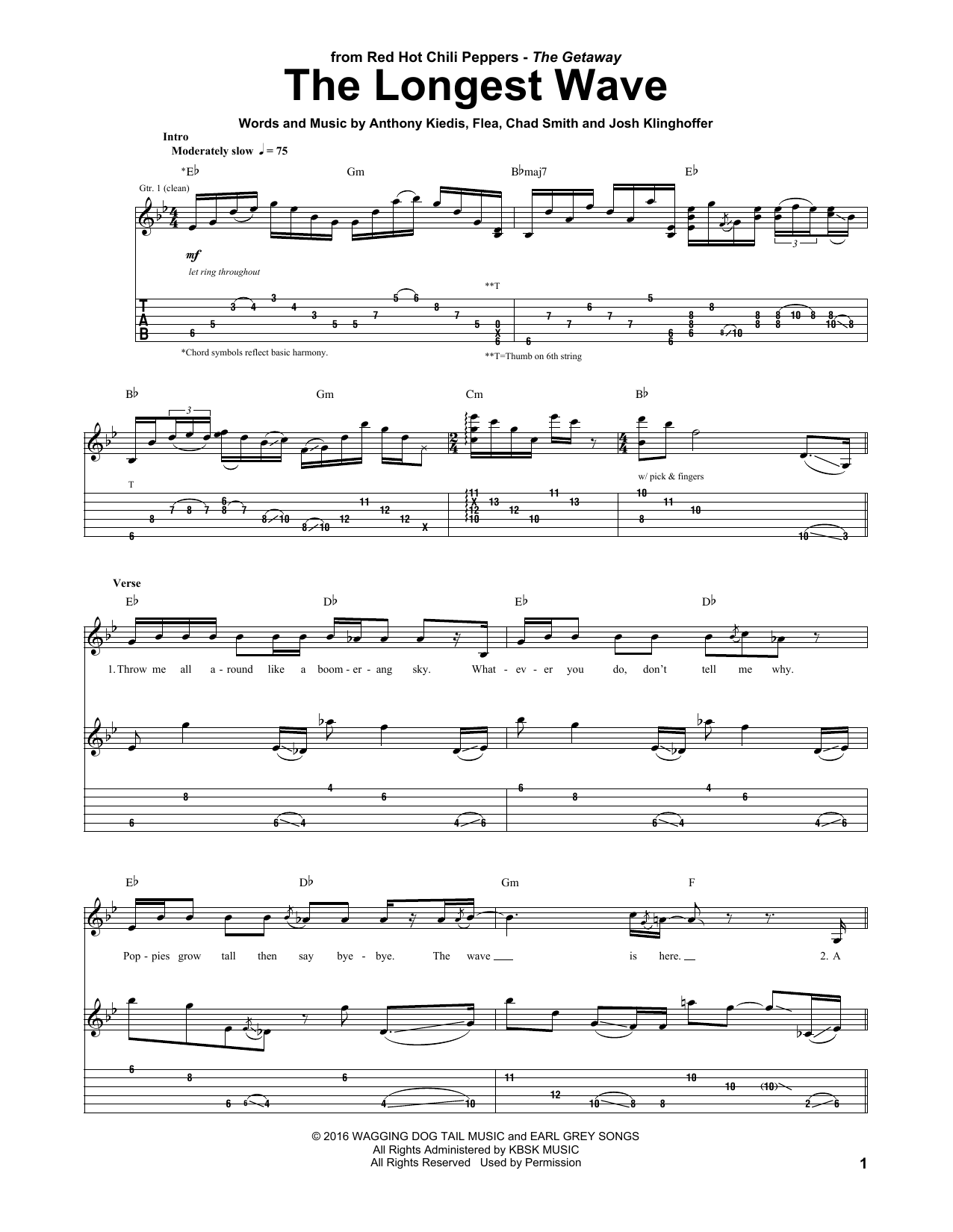 Download or print Red Hot Chili Peppers The Longest Wave sheet music, chords and digital score arranged for Guitar Tab. This Pop score includes 8 page(s).