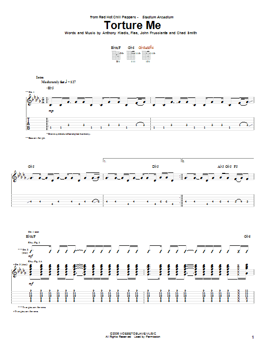 Download or print Red Hot Chili Peppers Torture Me sheet music, chords and digital score arranged for Guitar Tab. This Pop score includes 11 page(s).