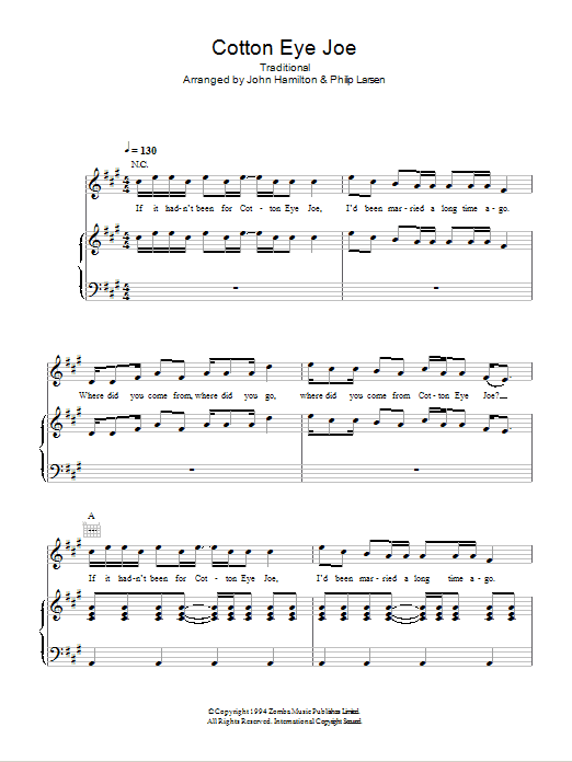 Download or print Rednex Cotton-Eye Joe sheet music, chords and digital score arranged for Guitar Chords/Lyrics. This Pop score includes 3 page(s).