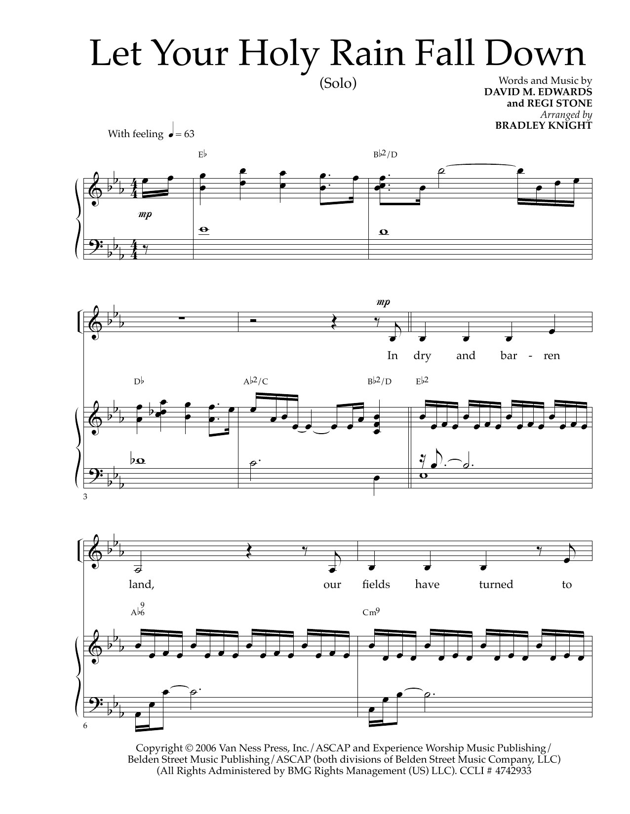 Download or print Regi Stone Let Your Holy Rain Fall Down sheet music, chords and digital score arranged for Piano & Vocal. This Christian score includes 8 page(s).