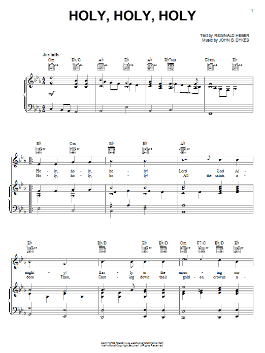 Download or print Reginald Heber Holy, Holy, Holy sheet music, chords and digital score arranged for Beginning Piano Solo. This Christian score includes 2 page(s).