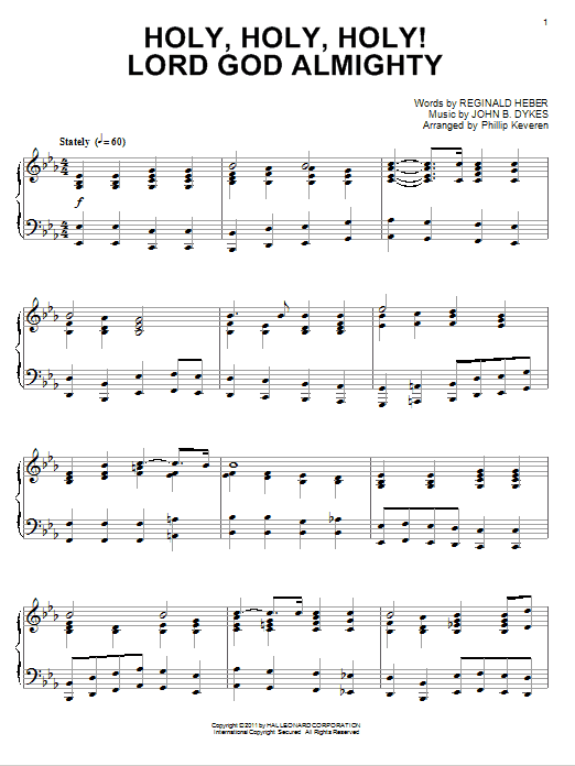Download or print Reginald Heber Holy, Holy, Holy! Lord God Almighty [Classical version] (arr. Phillip Keveren) sheet music, chords and digital score arranged for Piano Solo. This Christian score includes 3 page(s).
