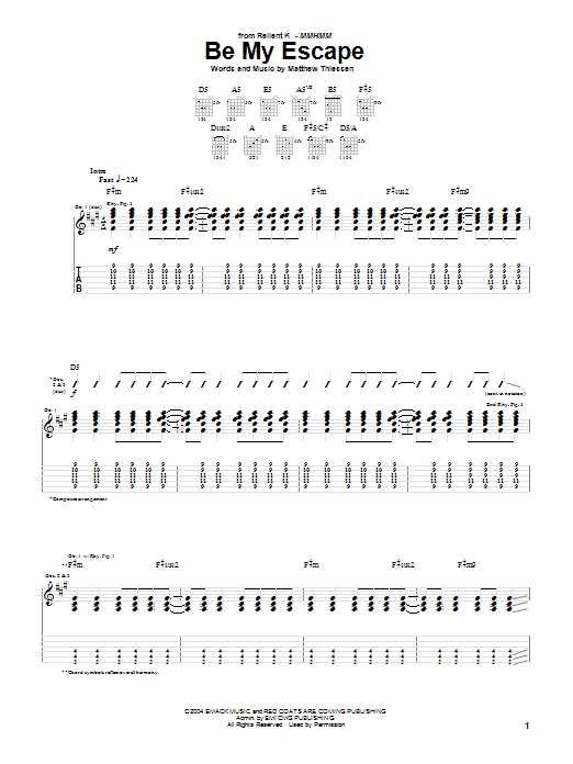 Download or print Relient K Be My Escape sheet music, chords and digital score arranged for Guitar Tab. This Christian score includes 11 page(s).