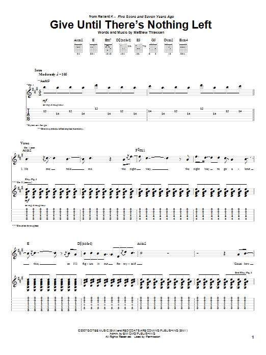 Download or print Relient K Give Until There's Nothing Left sheet music, chords and digital score arranged for Piano, Vocal & Guitar Chords (Right-Hand Melody). This Pop score includes 7 page(s).