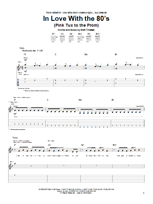 Download or print Relient K In Love With The 80's (Pink Tux To The Prom) sheet music, chords and digital score arranged for Guitar Tab. This Christian score includes 7 page(s).