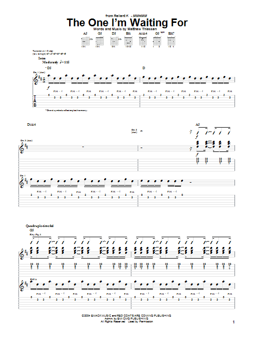 Download or print Relient K The One I'm Waiting For sheet music, chords and digital score arranged for Guitar Tab. This Christian score includes 9 page(s).