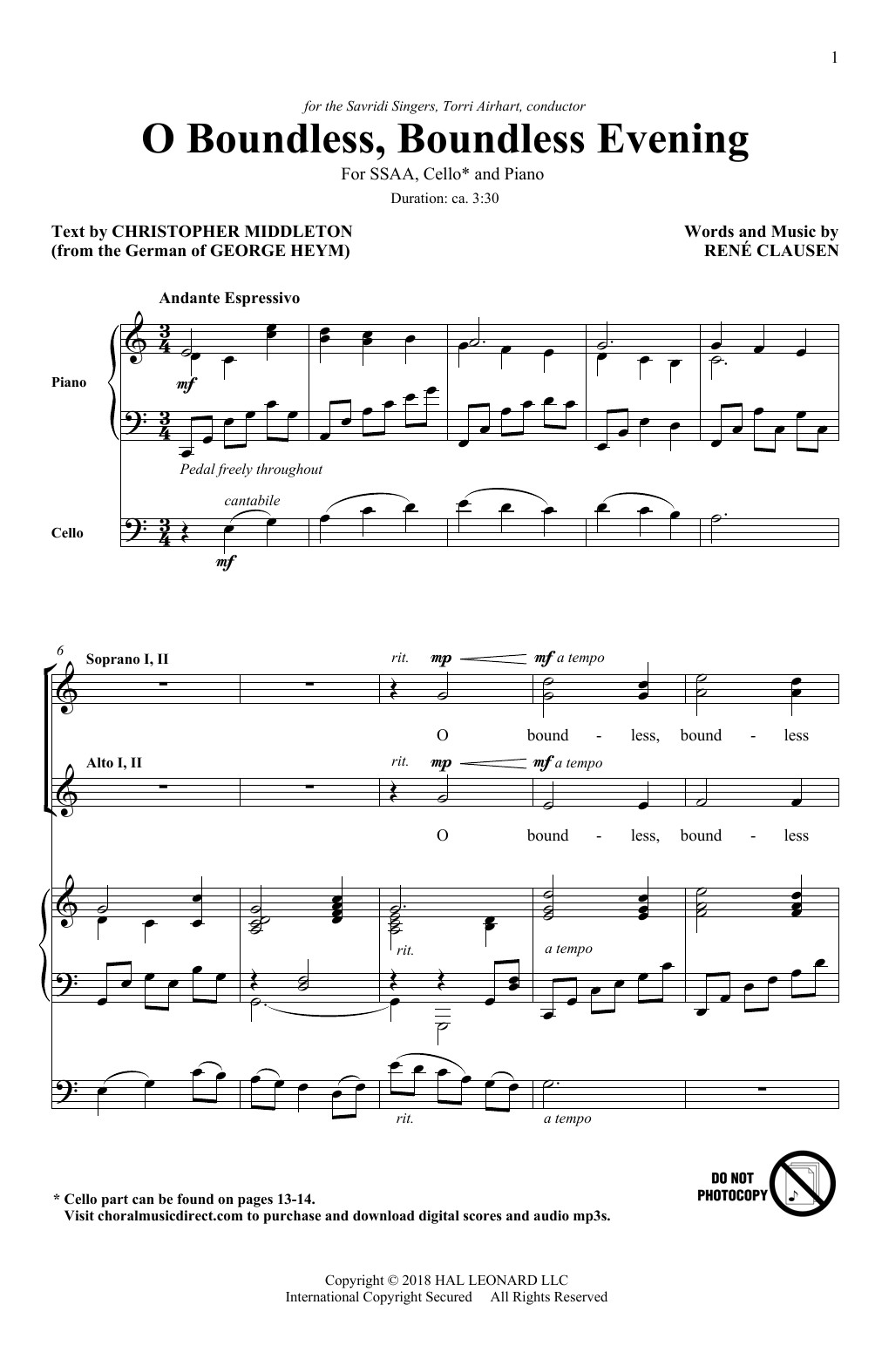 Download or print René Clausen O Boundless, Boundless Evening sheet music, chords and digital score arranged for SSA Choir. This Concert score includes 14 page(s).