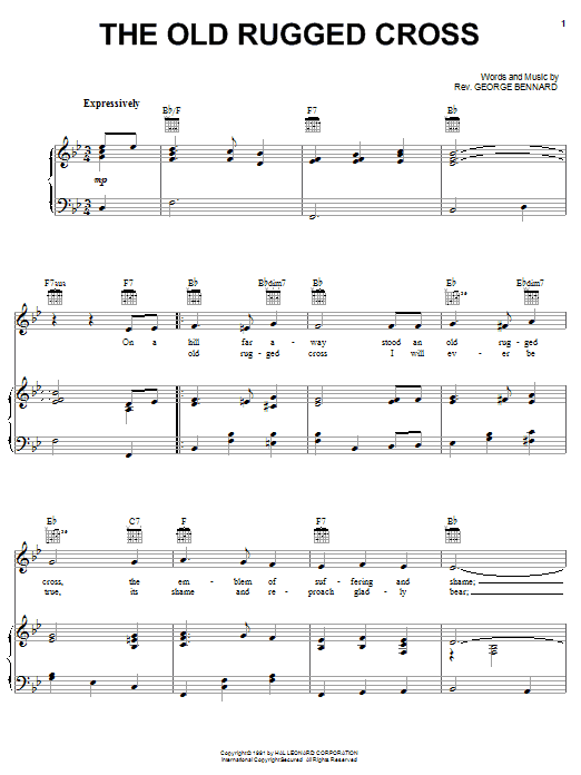 Download or print Rev. George Bennard The Old Rugged Cross sheet music, chords and digital score arranged for Super Easy Piano. This Gospel score includes 2 page(s).