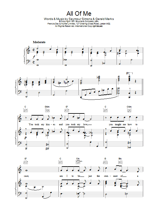 Download or print Frank Sinatra All Of Me sheet music, chords and digital score arranged for Piano, Vocal & Guitar Chords. This Standards score includes 4 page(s).
