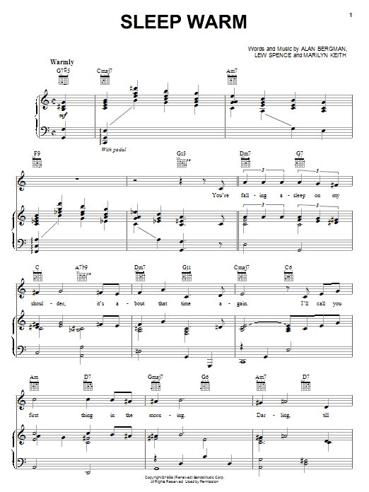 Download or print Frank Sinatra Sleep Warm sheet music, chords and digital score arranged for Piano & Vocal. This Jazz score includes 3 page(s).